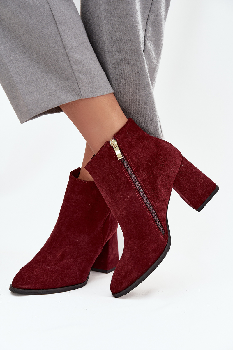 Botki Z Naturalnego Zamszu Obcas Słupek Ocieplane Bordowe Zazoo 3128