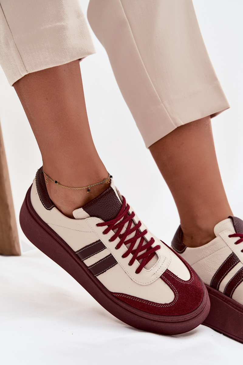 Skórzane Sneakersy Damskie Na Platformie Zazoo 3775 Beżowo-Bordowe
