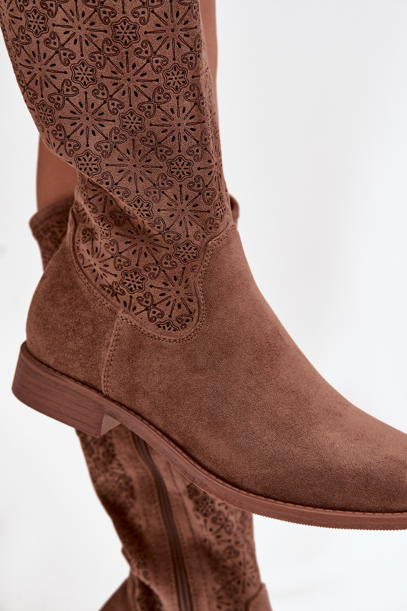 Kozaki Damskie Ażurowe Na Płaskim Obcasie S.Barski HY52-534 Brązowe