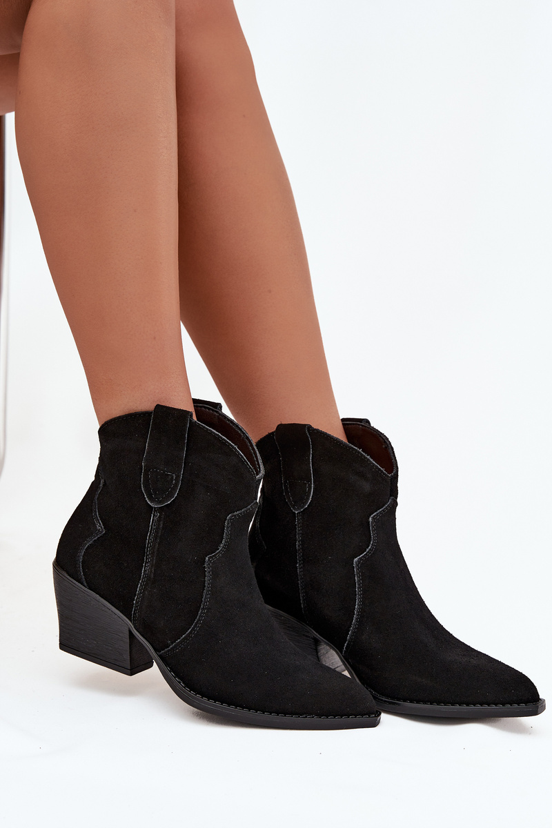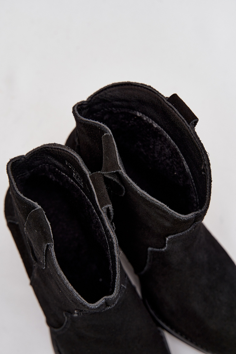Wsuwane Botki Kowbojki Damskie Z Naturalnego Zamszu Czarne Beretta