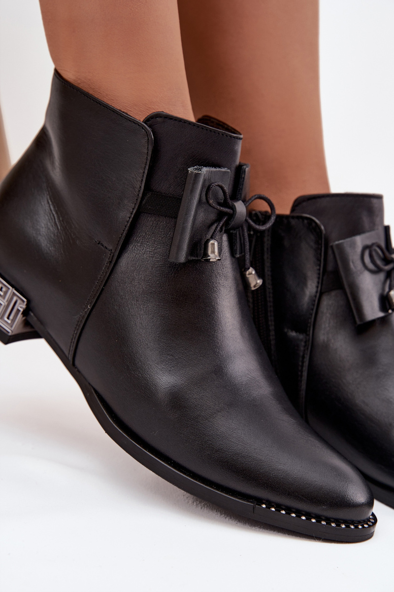 Botki Damskie Z Naturalnej Skóry Na Niskim Obcasie Zazoo 1396 Czarne
