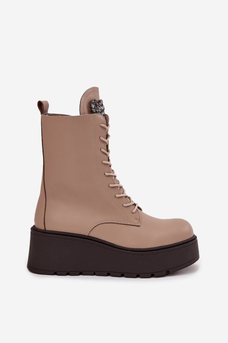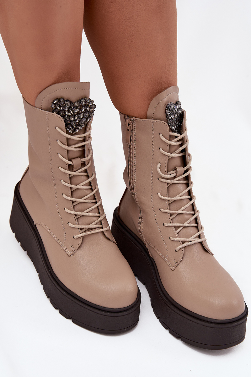 Skórzane Botki Damskie Z Ozdobą Ocieplane Beżowe Ulrika
