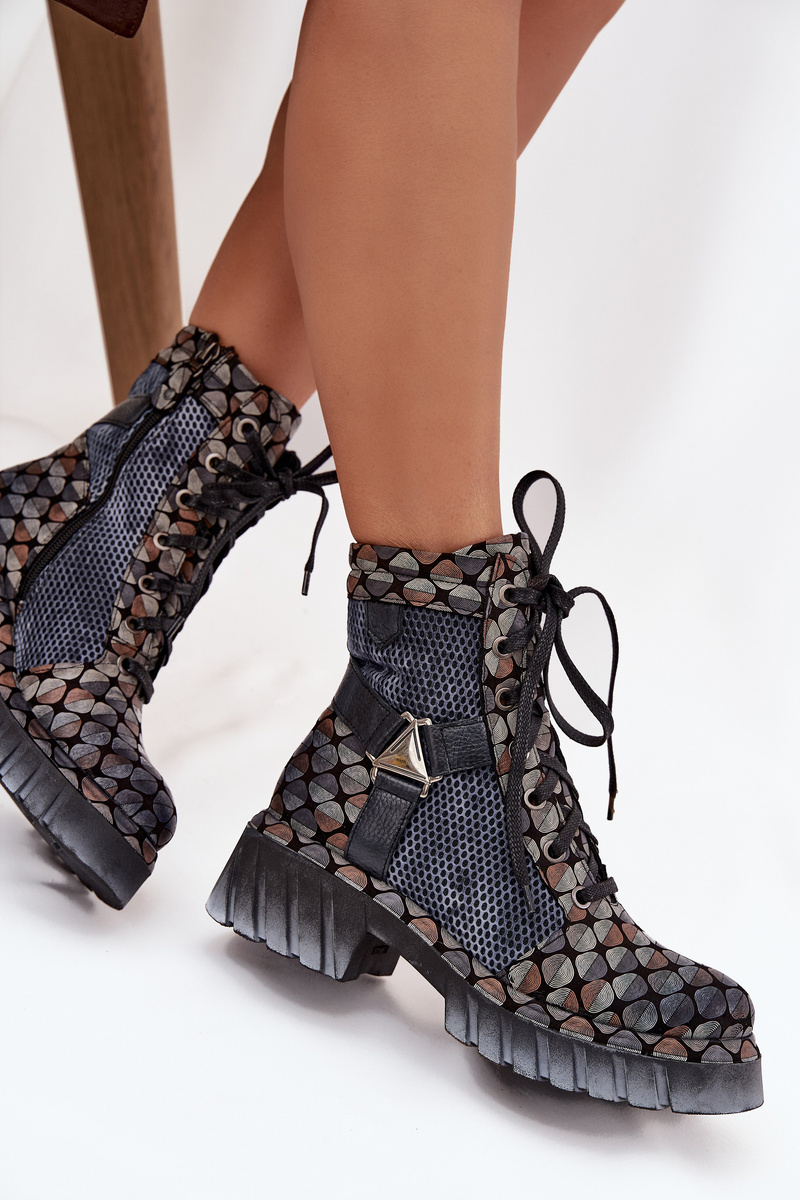 Skórzane Botki Workery Damskie Maciejka 07072-03 Multikolor