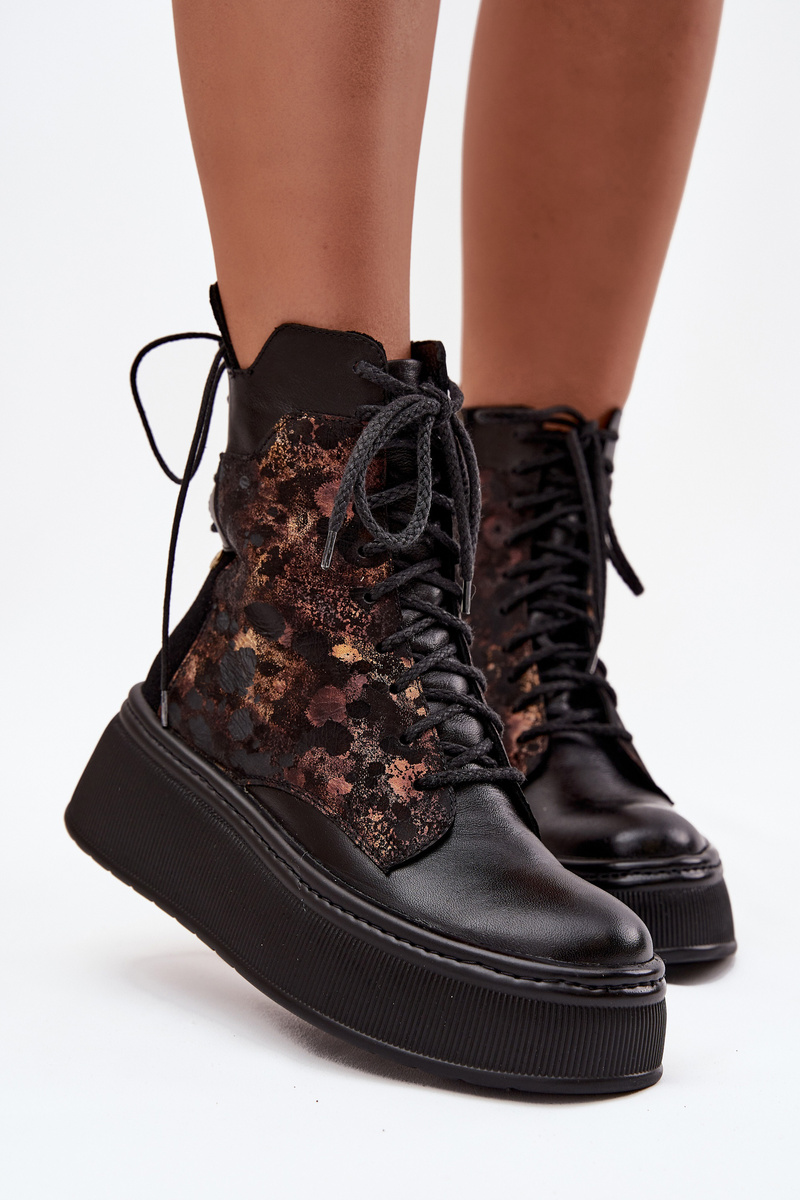 Skórzane Botki Na Platformie Maciejka 07086-01 Czarne