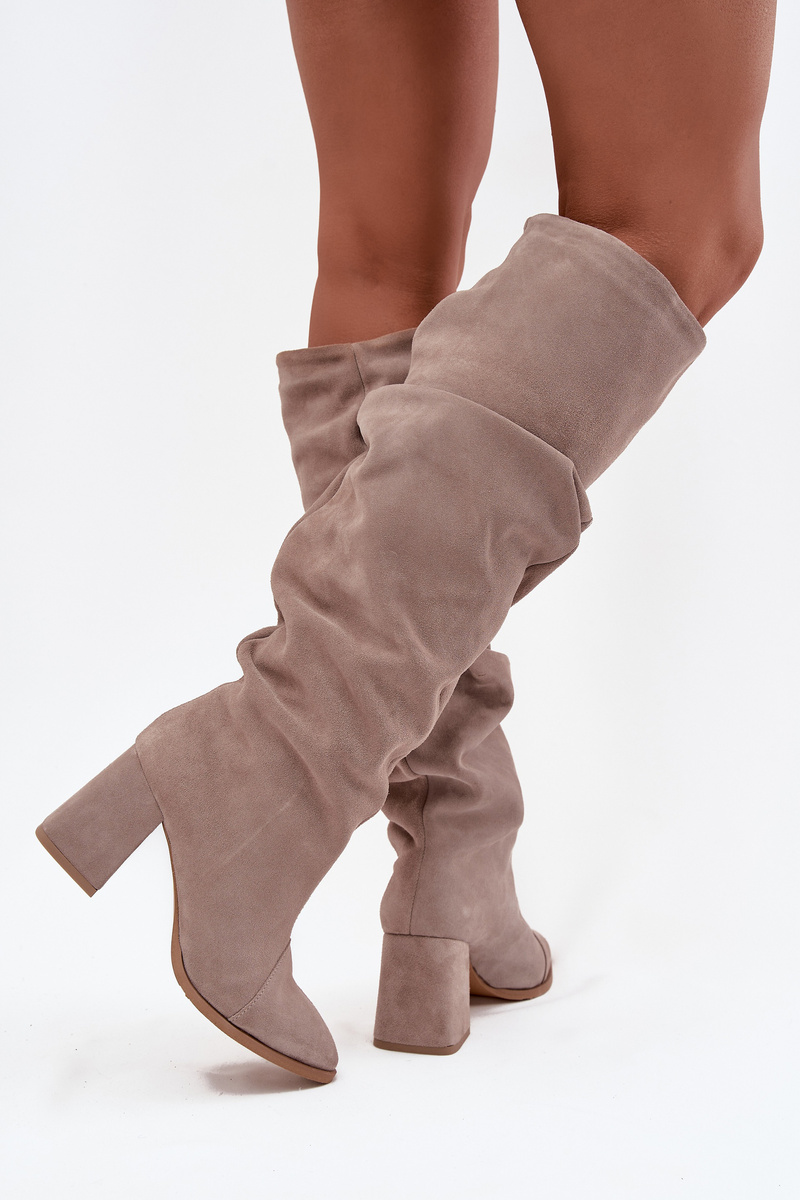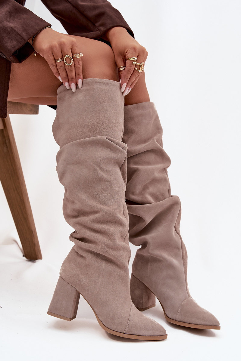 Marszczone Kozaki Z Naturalnego Zamszu Na Słupku Ocieplane Zazoo 4228 Beżowe