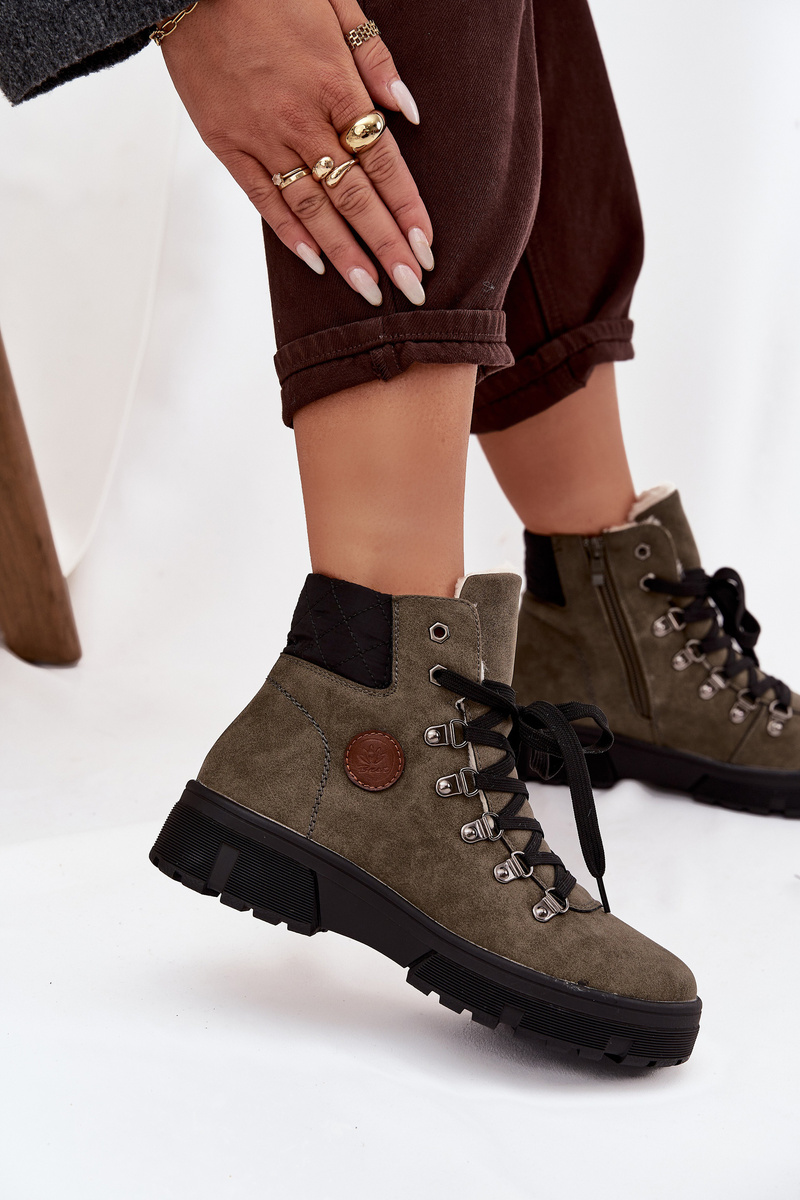 Damskie trapery wykonane z eko skóry to stylowa i praktyczna propozycja na chłodniejsze dni. Osadzone na solidnej platformie, zapewniają stabilność i wygodę podczas chodzenia. Wnętrze ocieplone miękkim futerkiem gwarantuje ciepło i komfort, dzięki czemu buty świetnie sprawdzą się w zimowe dni. Model posiada zarówno sznurowanie, jak i zamek, co ułatwia zakładanie oraz pozwala na idealne dopasowanie do stopy. To uniwersalne trapery, które doskonale uzupełnią codzienne stylizacje. Przy wyborze rozmiaru prosimy sugerować się tabelą rozmiarów.