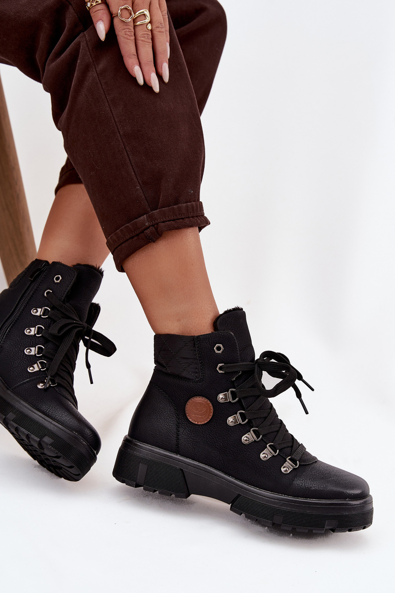 Ocieplane Trapery Damskie Na Platformie Czarne Zaraine