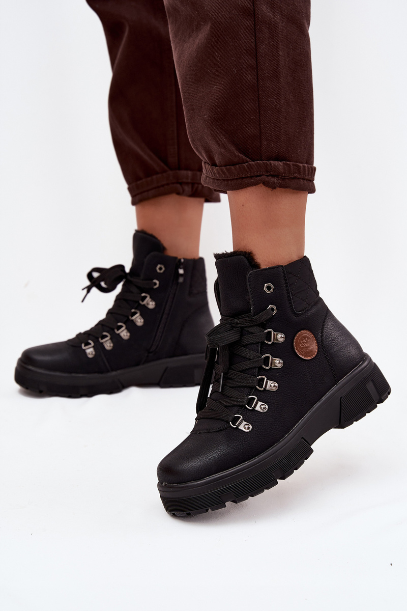 Damskie trapery wykonane z eko skóry to stylowa i praktyczna propozycja na chłodniejsze dni. Osadzone na solidnej platformie, zapewniają stabilność i wygodę podczas chodzenia. Wnętrze ocieplone miękkim futerkiem gwarantuje ciepło i komfort, dzięki czemu buty świetnie sprawdzą się w zimowe dni. Model posiada zarówno sznurowanie, jak i zamek, co ułatwia zakładanie oraz pozwala na idealne dopasowanie do stopy. To uniwersalne trapery, które doskonale uzupełnią codzienne stylizacje. Przy wyborze rozmiaru prosimy sugerować się tabelą rozmiarów.