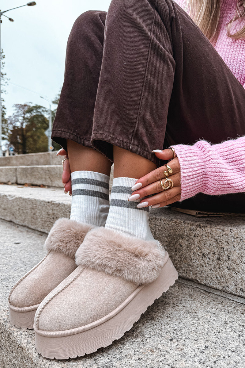 Śniegowce Damskie Na Platformie Z Futerkiem I Haftem Beżowe Querina