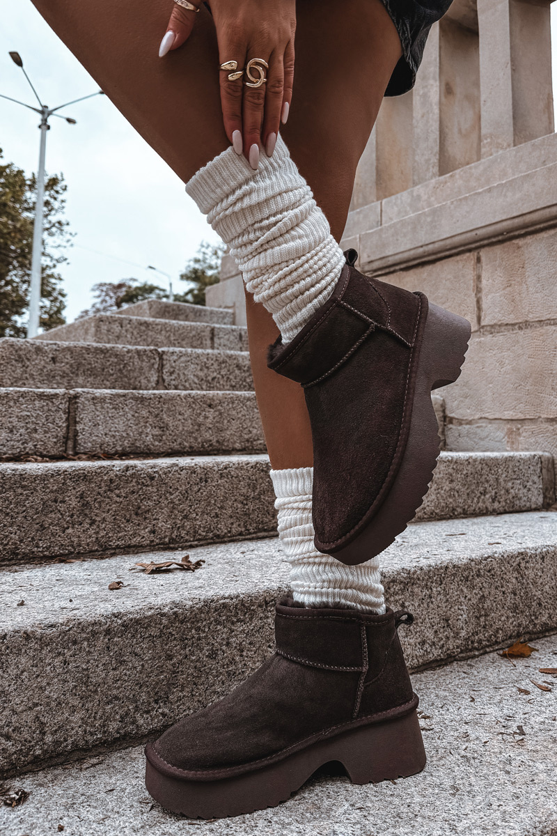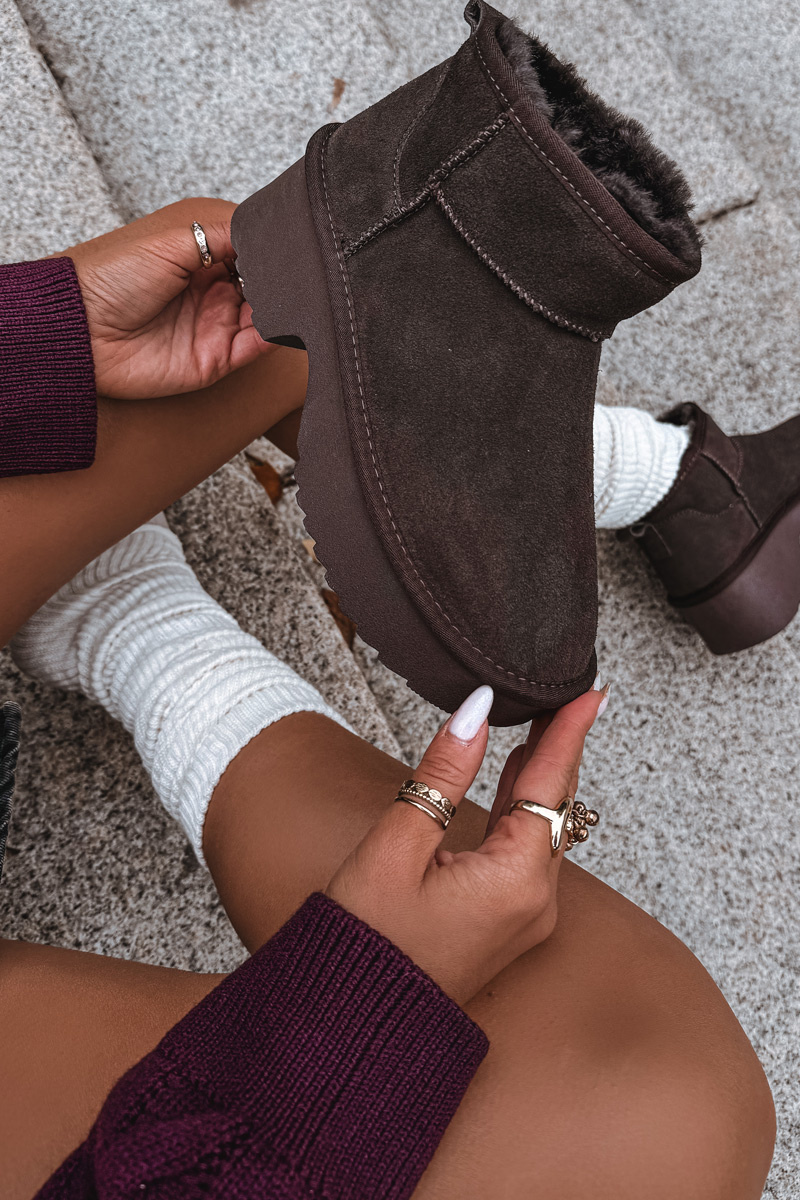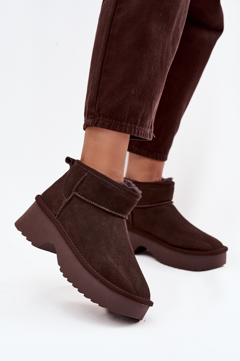 Śniegowce Damskie Z Naturalnego Zamszu Ocieplane Futerkiem Czekoladowe Milora