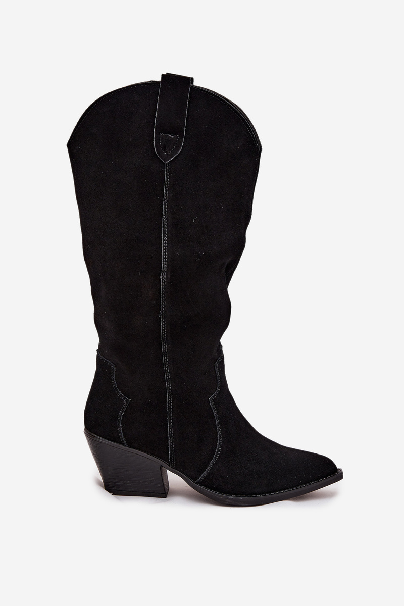 Skórzane Zamszowe Kozaki Kowbojki Damskie Ocieplane Czarne Urselle