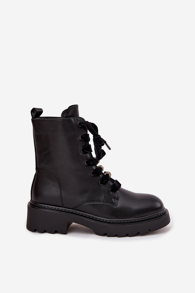 Ocieplane Botki Damskie Z Ozdobnym Sznurowaniem Czarne Elindra