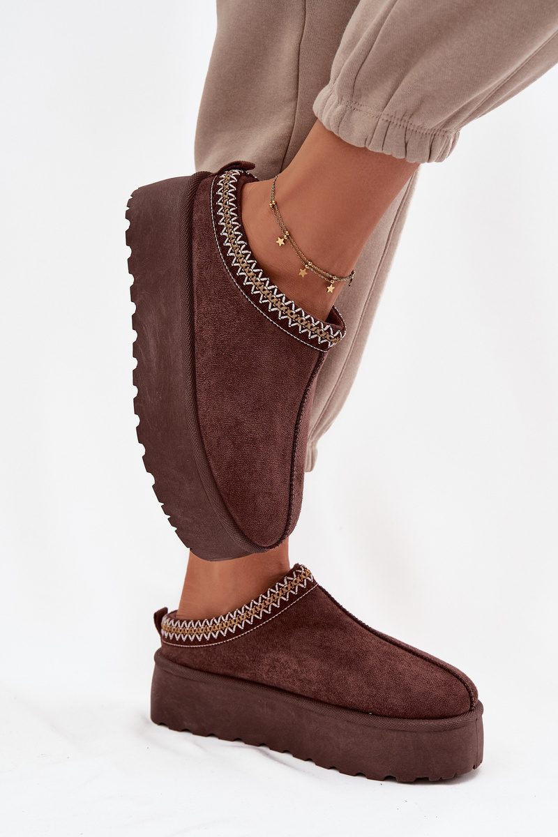 Śniegowce Damskie Z Ozdobnym Haftem Czekoladowe Jenira