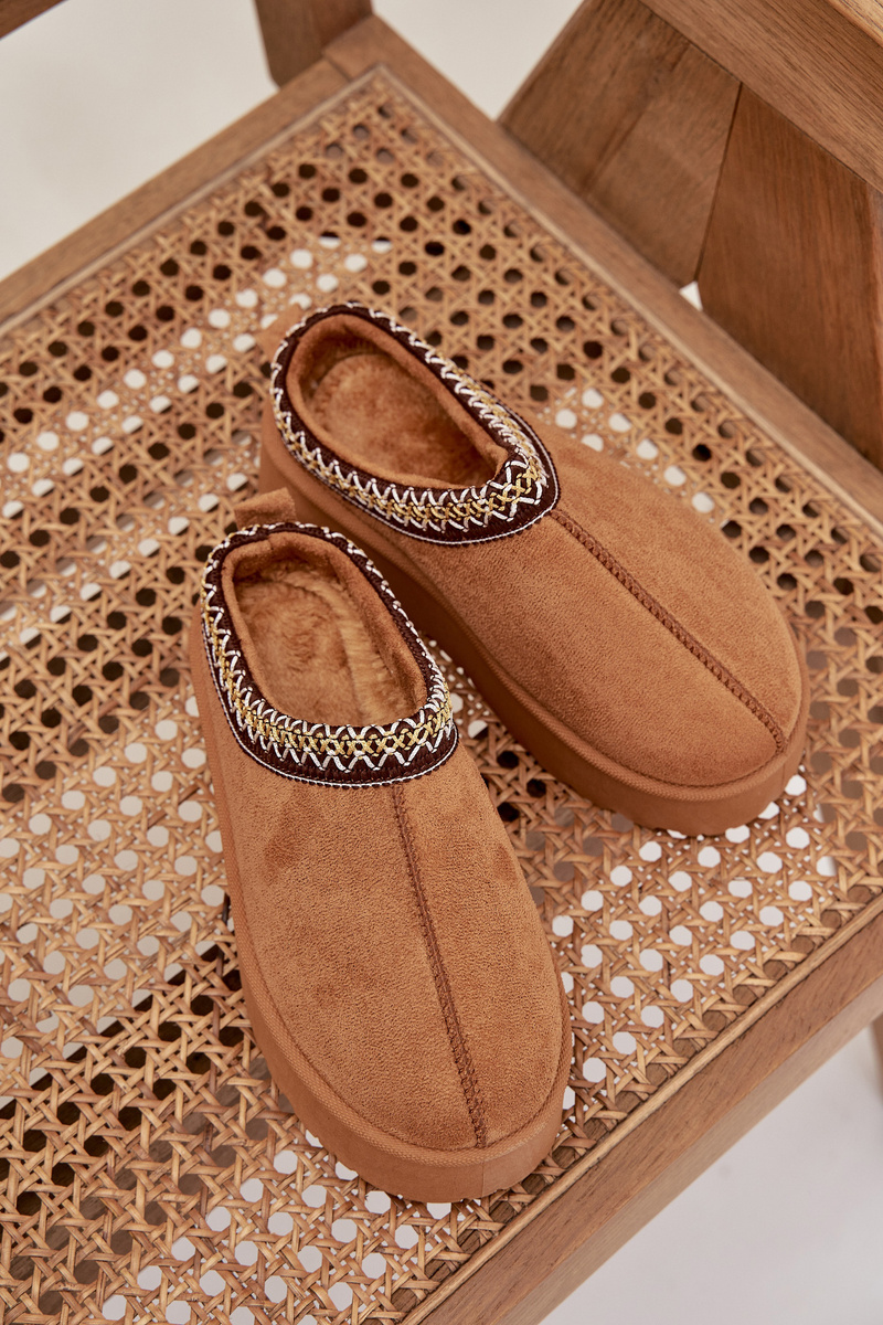 Śniegowce dziecięce/młodzieżowe wykonane z eko zamszu to idealna propozycja na zimowe dni. Model osadzony na platformie zapewnia wygodę oraz skuteczną izolację od chłodnego podłoża, gwarantując ciepło nawet podczas mroźnej pogody. Wnętrze butów zostało ocieplone miękkim futerkiem, które przyjemnie otula stopy, zwiększając komfort noszenia. Niska, wsuwana cholewka ułatwia zakładanie i zdejmowanie, co czyni model wyjątkowo praktycznym na co dzień. Ozdobny haft umieszczony w górnej części cholewki dodaje całości uroku i modnego charakteru. To stylowe i funkcjonalne śniegowce, które świetnie sprawdzą się zarówno na zimowe spacery, jak i do codziennego użytku w chłodne dni.