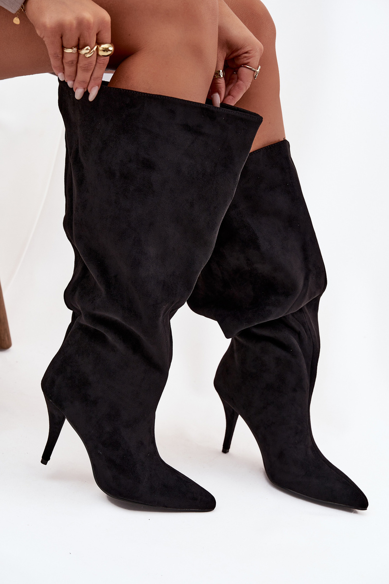 Wsuwane Kozaki Damskie Na Szpilce Z Eko Zamszu Czarne Noretta