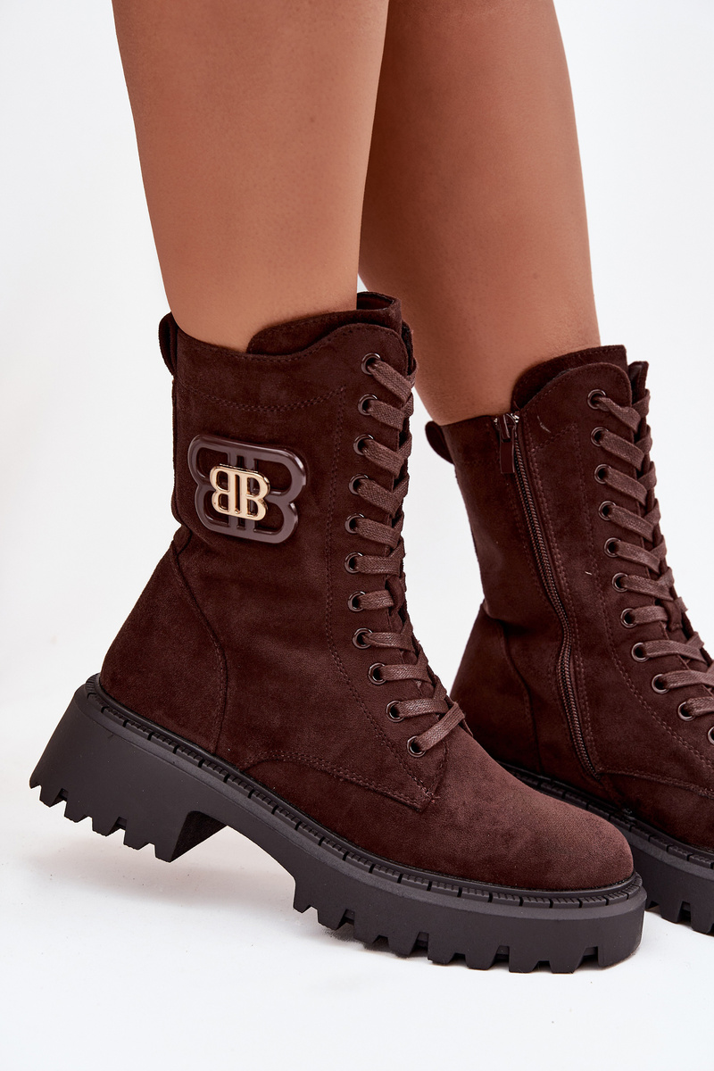 Botki Wokrery Damskie Z Ozdobnym Elementem Ocieplane Czekoladowe Kalindra