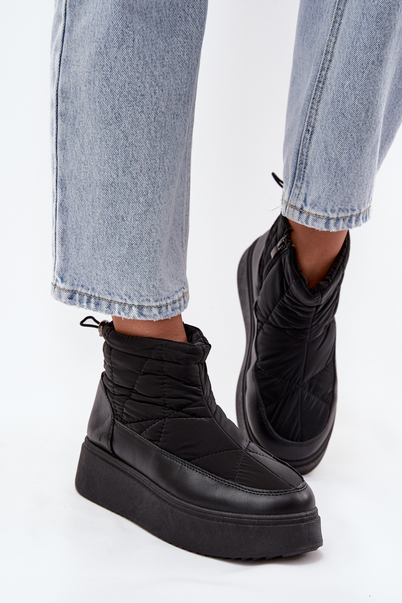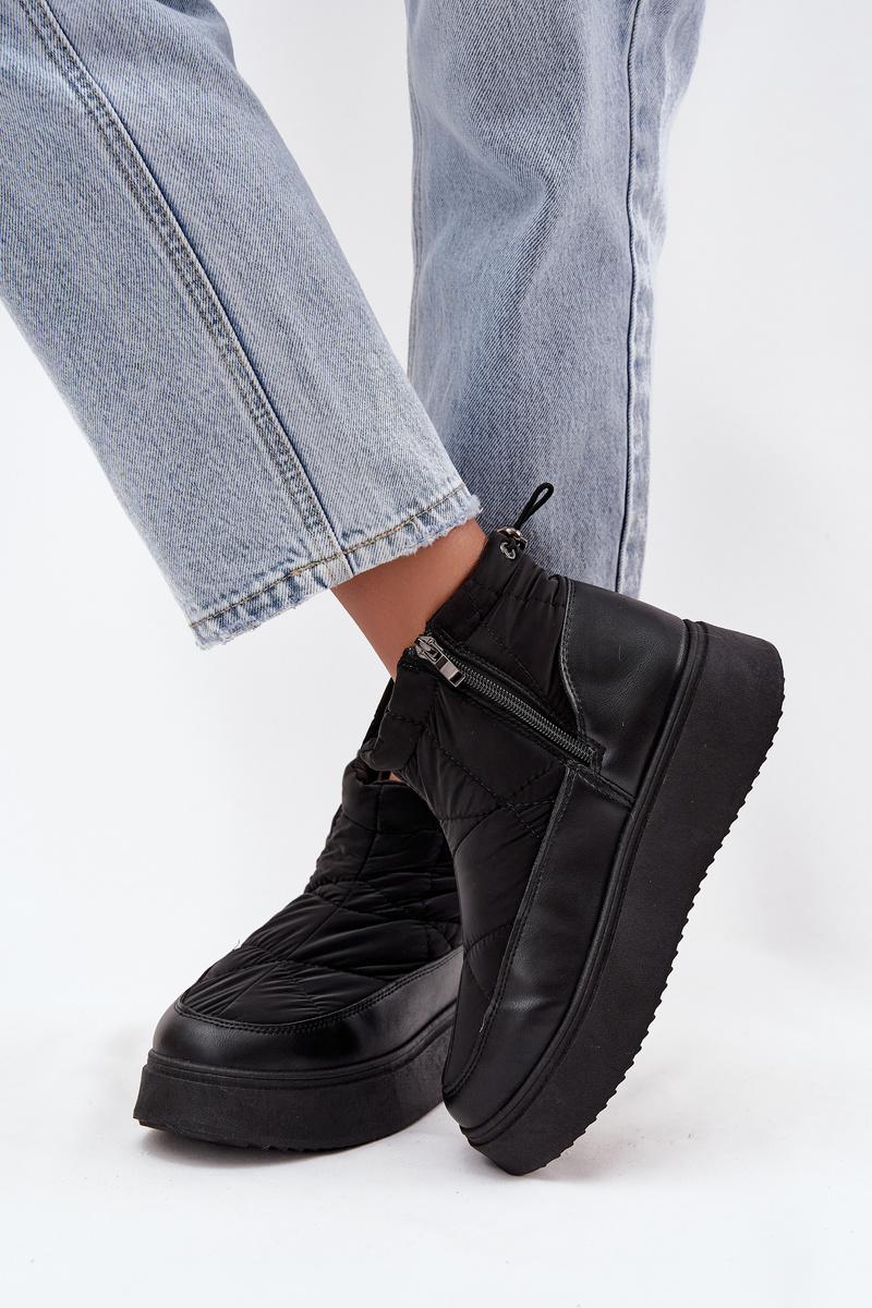 Śniegowce Damskie Na Platformie Ocieplane Futerkiem Czarne Tahlira