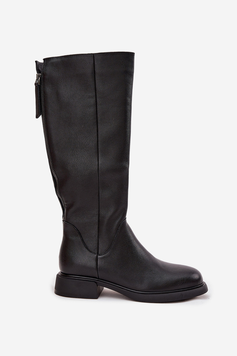 Skórzane Kozaki Damskie Na Płaskim Obcasie Ocieplane D&A JC52-837 Czarne
