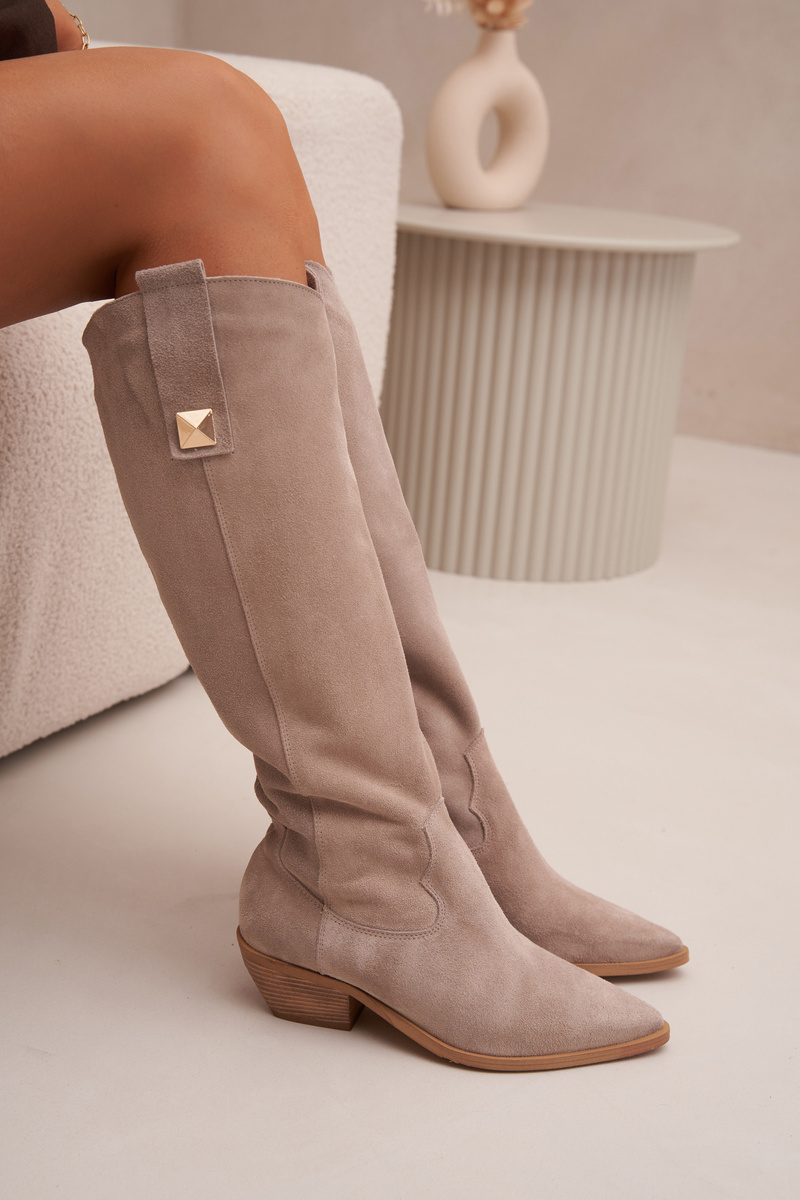 Skórzane Zamszowe Kozaki Kowbojki Ocieplane Zazoo 4224 Cappuccino