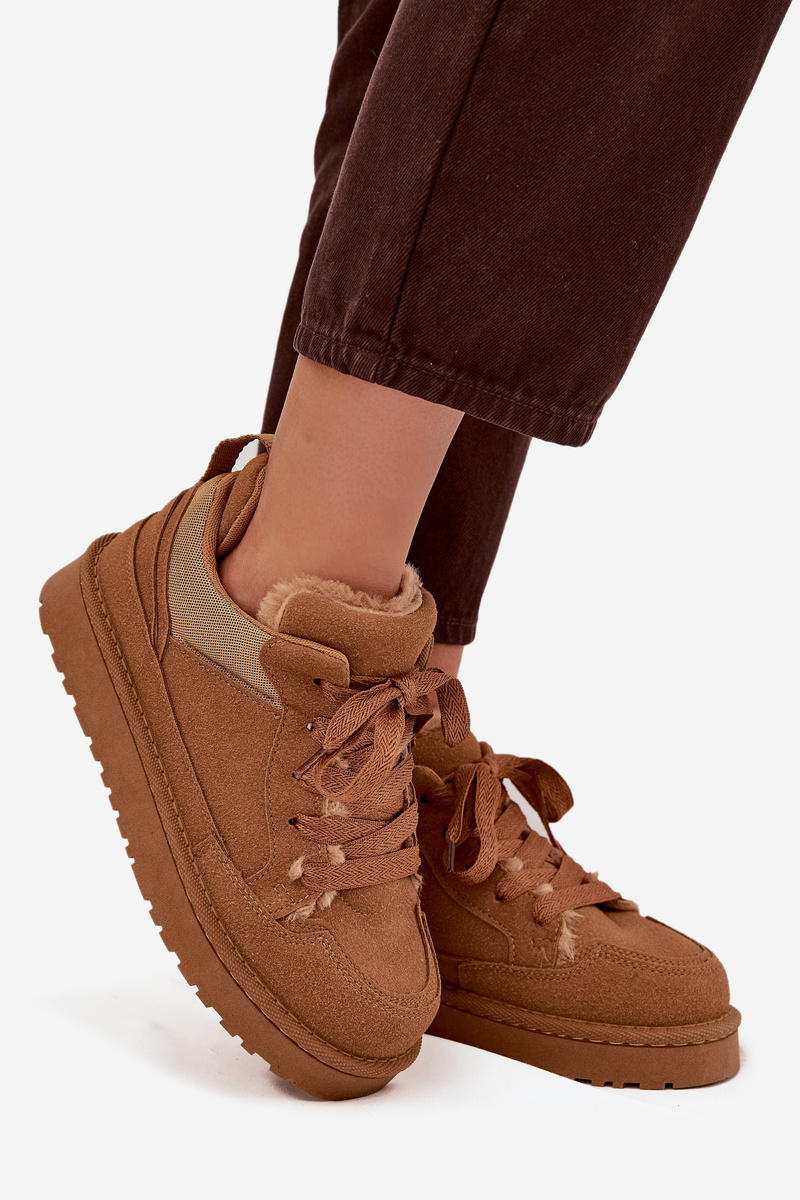Sneakersy Damskie Ocieplane Futerkiem Camel Cyrissa