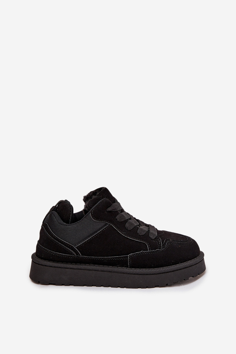Sneakersy damskie wykonane z eko zamszu. Model został osadzony na podeszwie z gumowego tworzywa, która zapewnia dobrą przyczepność i stabilność podczas chodzenia. Sznurowane pozwala idealnie dopasować buty do stopy, a ocieplenie miękkim futerkiem gwarantuje ciepło i wygodę w chłodniejsze dni. To stylowe sneakersy, które doskonale sprawdzą się w codziennych stylizacjach – idealne do jeansów, legginsów i dresów. Model dostępny jest również w rozmiarach dziecięcych, dzięki czemu możesz stworzyć wyjątkowy, dopasowany zestaw mama + dziecko.