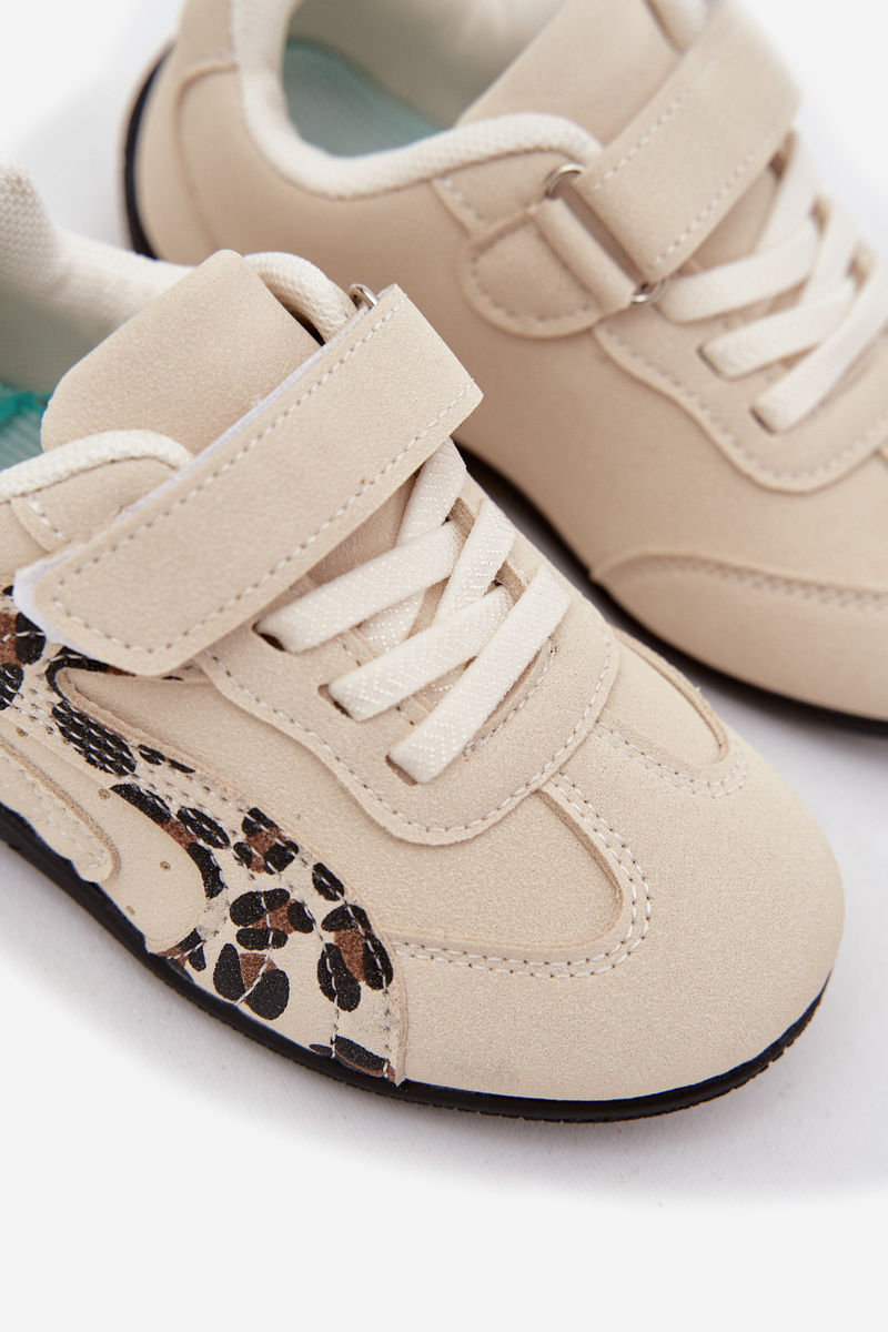Buty Sportowe Dziecięce Z Rzepem Beżowe Z Panterką Perrin