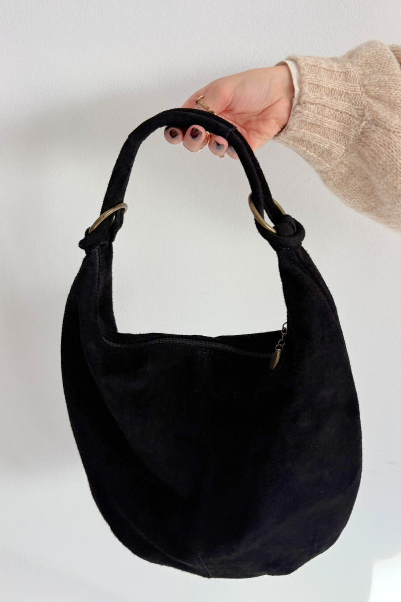 Torebka Z Naturalnego Zamszu Czarna Floriah