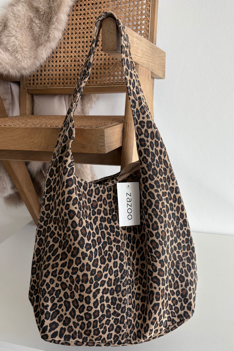 Torebka typu shopper wykonana z naturalnego zamszu. Modny wzór w panterkę nadaje jej charakteru i przyciąga uwagę, czyniąc z niej efektowny dodatek do codziennych stylizacji. Model zapinany na zamek zapewnia bezpieczeństwo przechowywanych rzeczy, a przestronne wnętrze pomieści wszystko, co niezbędne na co dzień. Torebka bez paska, z wygodnymi uchwytami, świetnie sprawdzi się zarówno do pracy, na zakupy, jak i na spotkania w mieście.