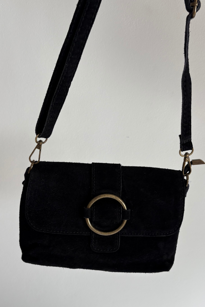 Skórzana Zamszowa Mała Torebka Czarna Jessel