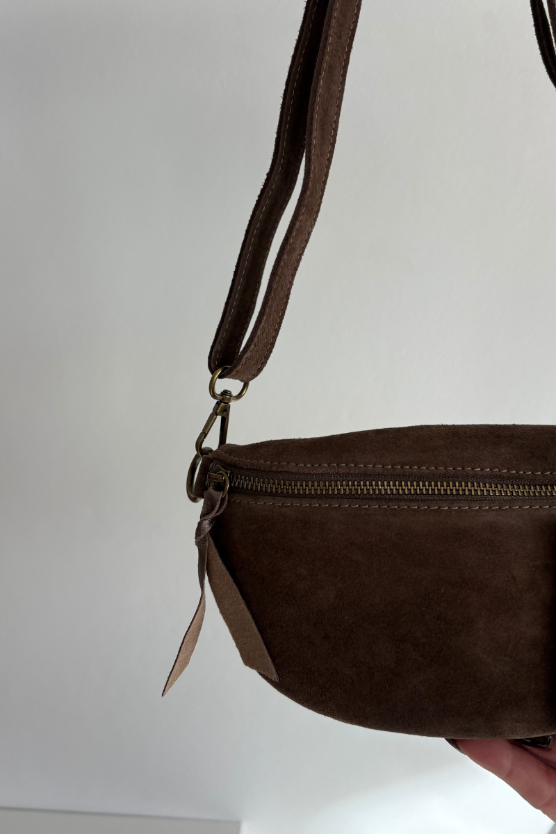 Skórzana Zamszowa Torebka Nerka Brązowa Wessa