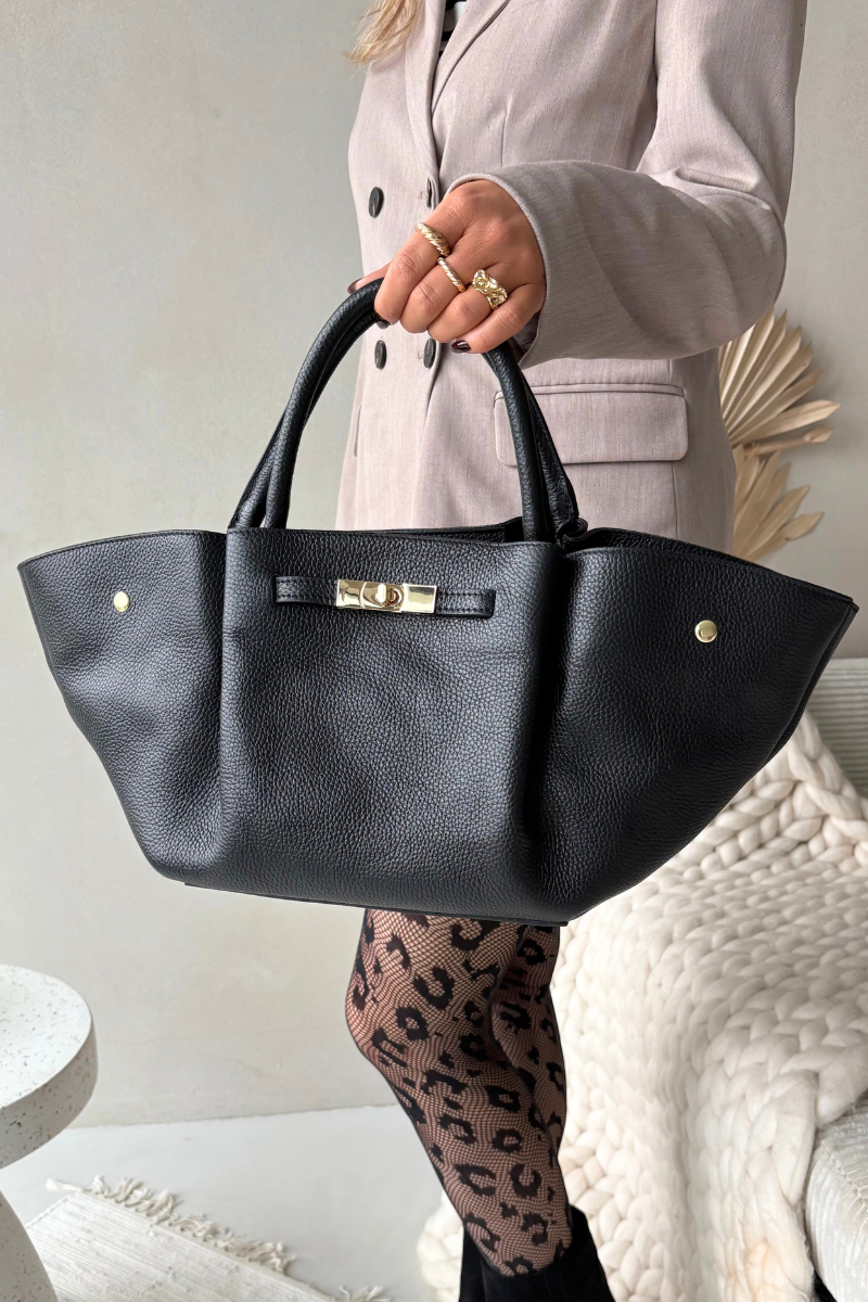 Torebka Z Naturalnej Skóry Czarna Fiorenza