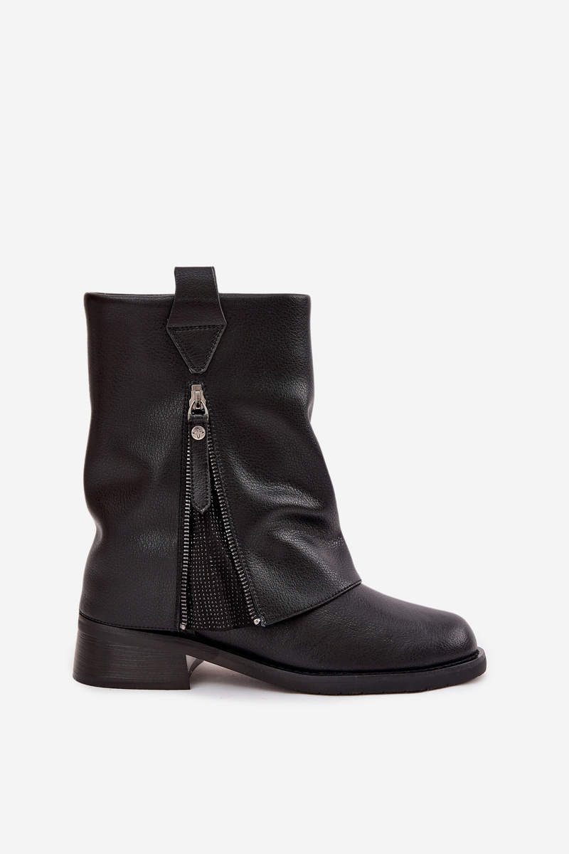 Skórzane Botki Damskie Z Wywiniętą Cholewką Na Klocku Maciejka K7213-01 Czarne