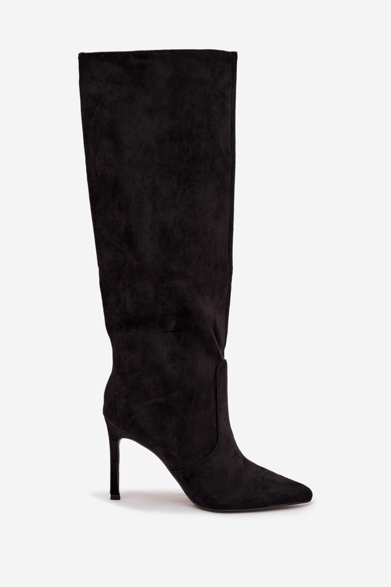 Ocieplane Kozaki Damskie Na Szpilce Z Eko Zamszu Czarne Rosavine