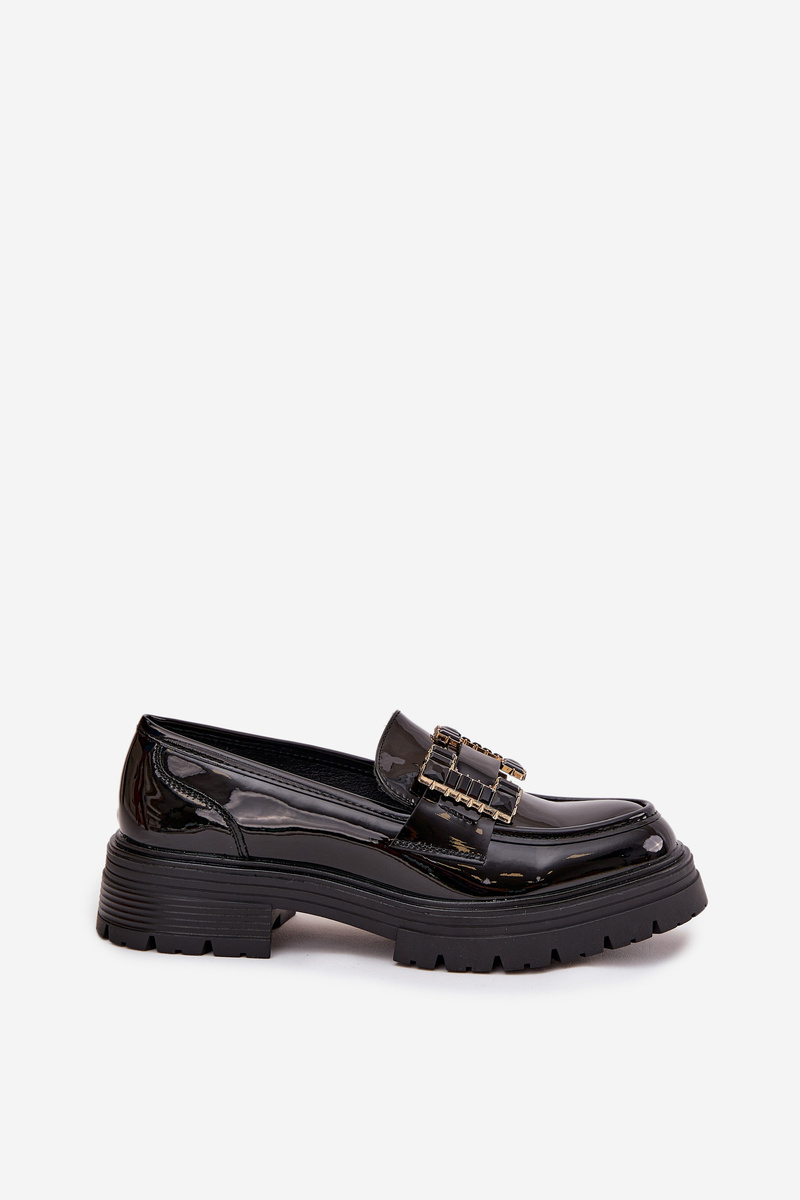 Mokasyny Damskie Lakierowane Z Ozdobą Czarne Ysandra