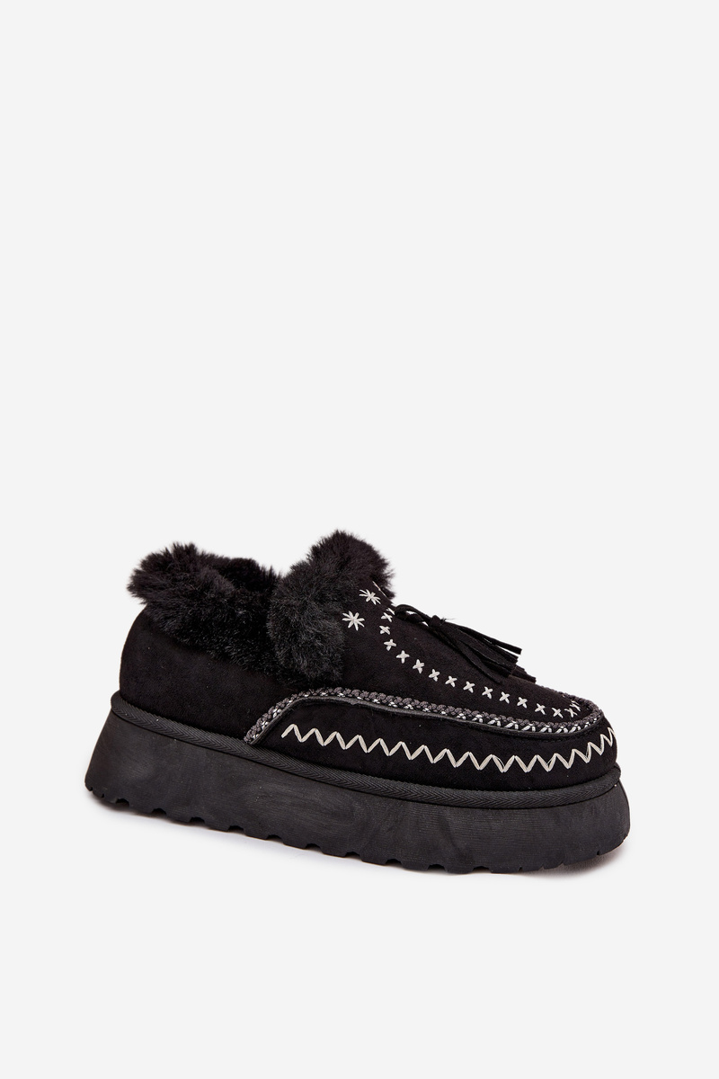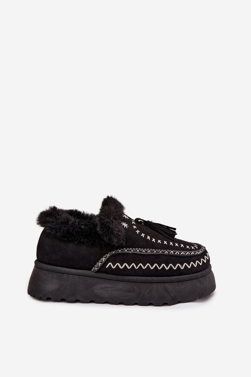 Śniegowce Damskie Na Platformie Z Futerkiem I Frędzlami Czarne Ferayne