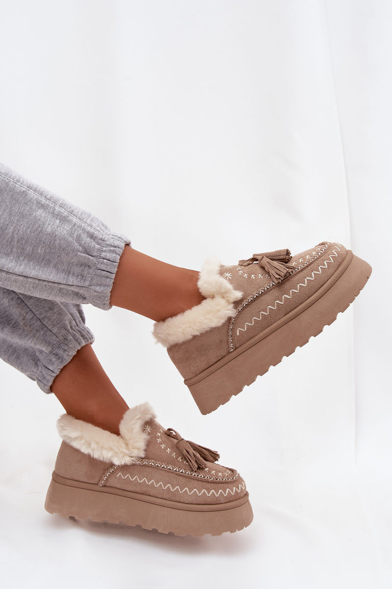 Śniegowce Damskie Na Platformie Z Futerkiem I Frędzlami Beżowe Ferayne