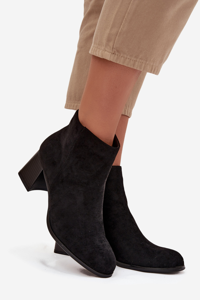 Botki Damskie Na Słupku Eko Zamszowe Czarne Marilou