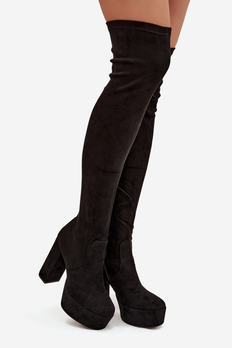 Kozaki Na Słupku I Platformie Za Kolano Eko Zamszowe Czarne Amareen