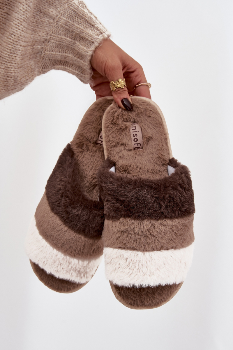 Futrzane Kapcie Damskie Z Paskami Brązowe Tahlisse