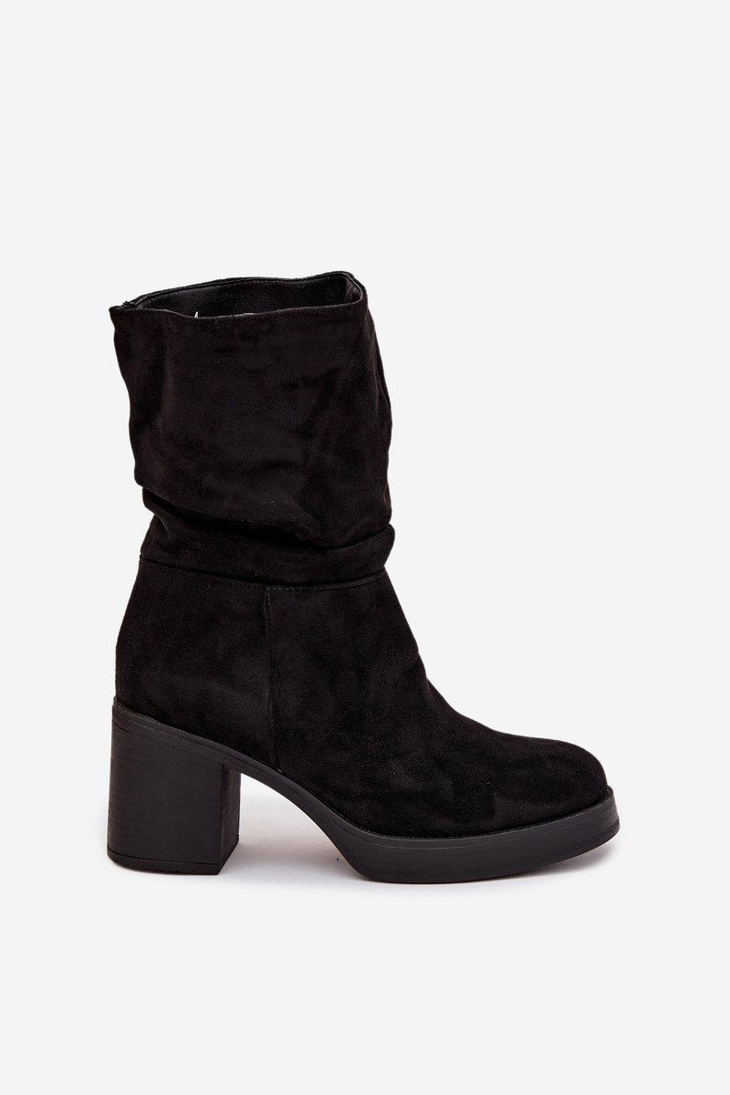 Botki Damskie Z Marszczeniem Na Słupku Ocieplane Czarne Amoria