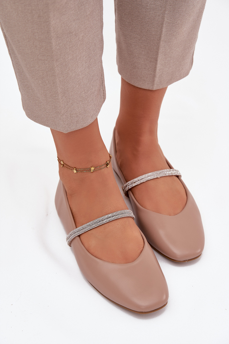 Baleriny Damskie Z Błyszczącymi Paskami Ciemnobeżowe Ilirene