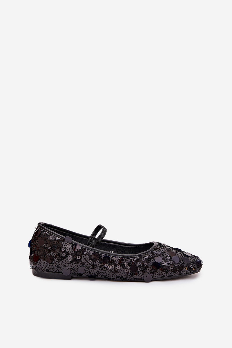 Baleriny Ozdobione Cekinami Czarne Terlina