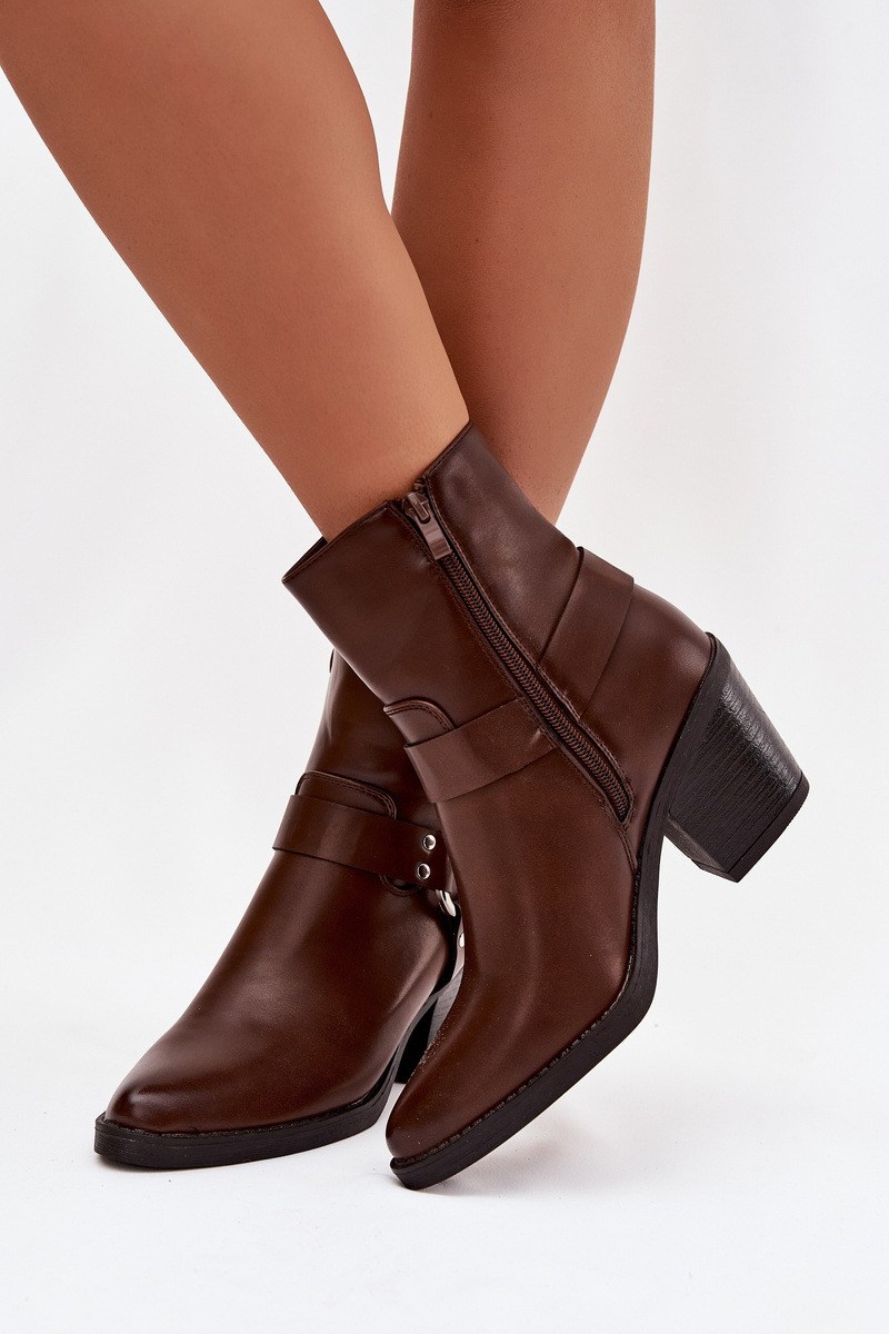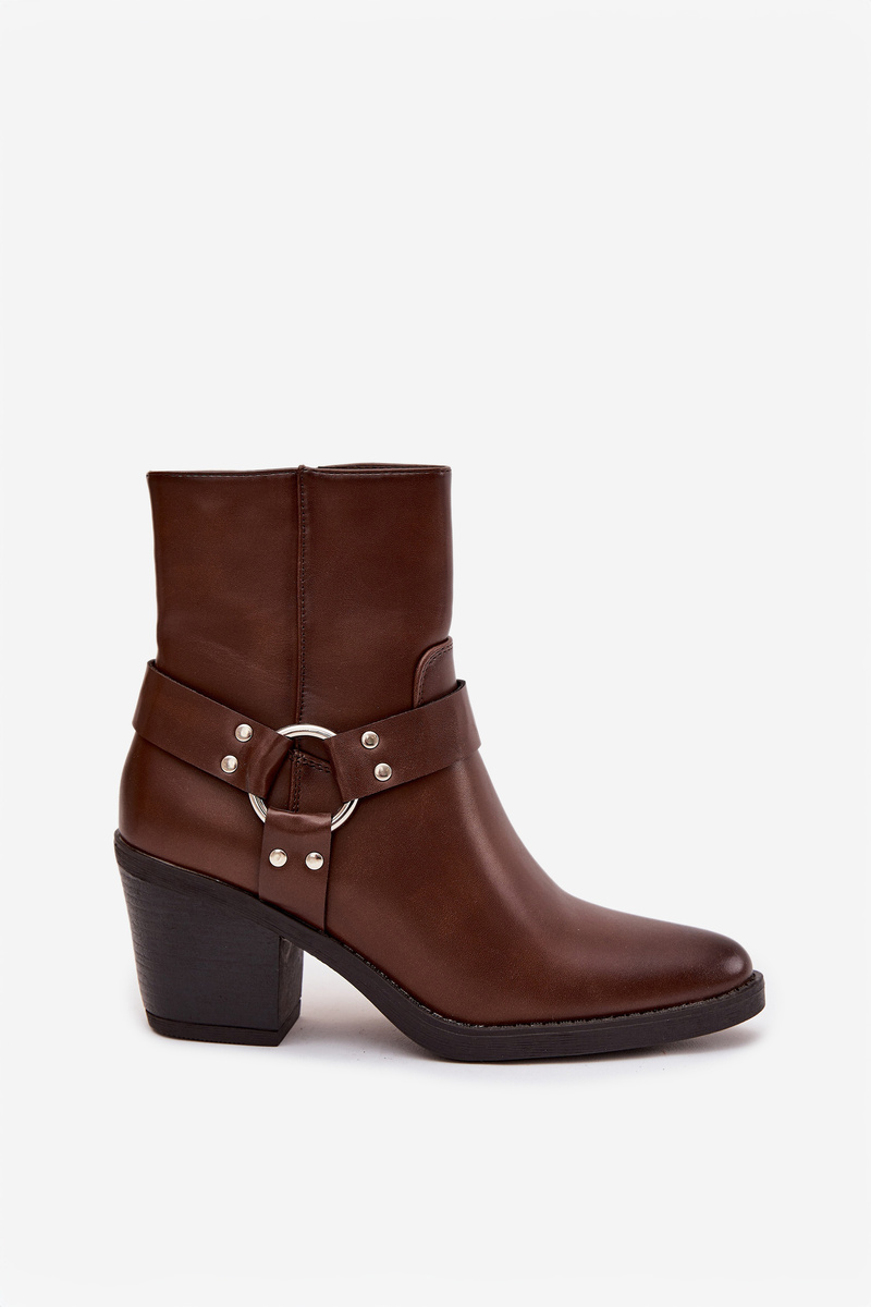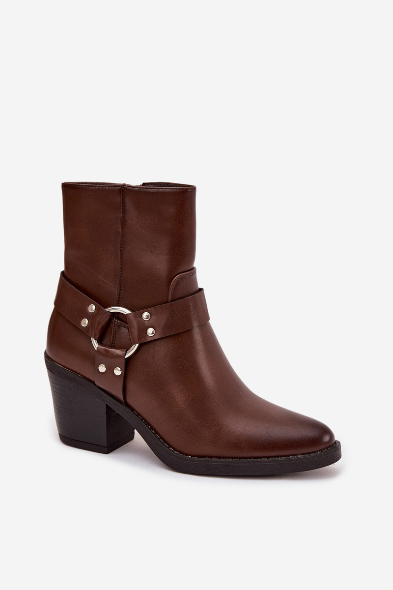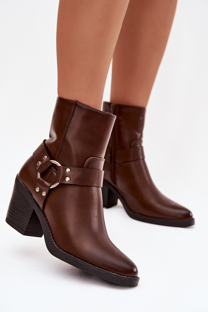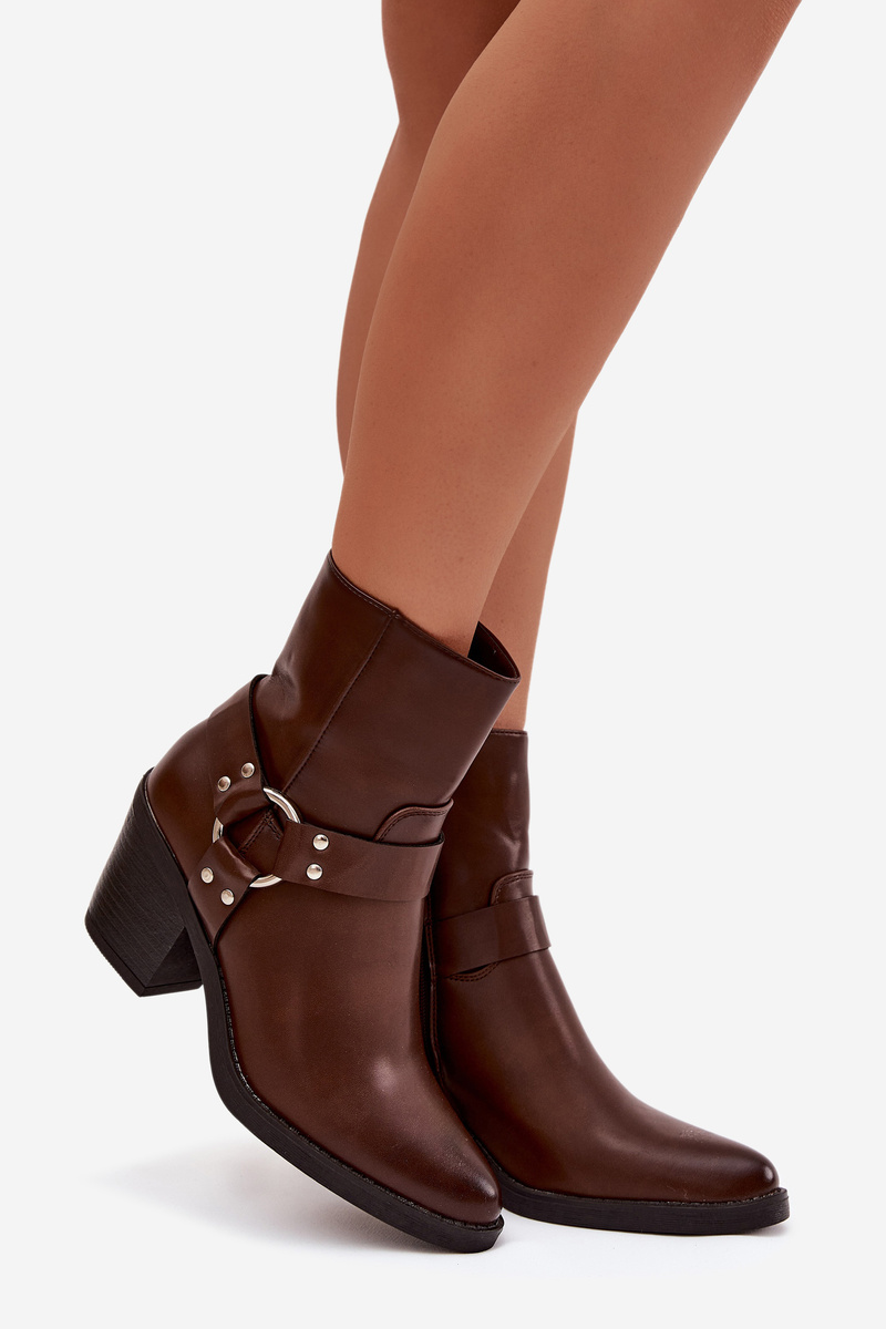 Ocieplane Botki Damskie Na Słupku Z Ozdobnym Elementem Brązowe Jurelle