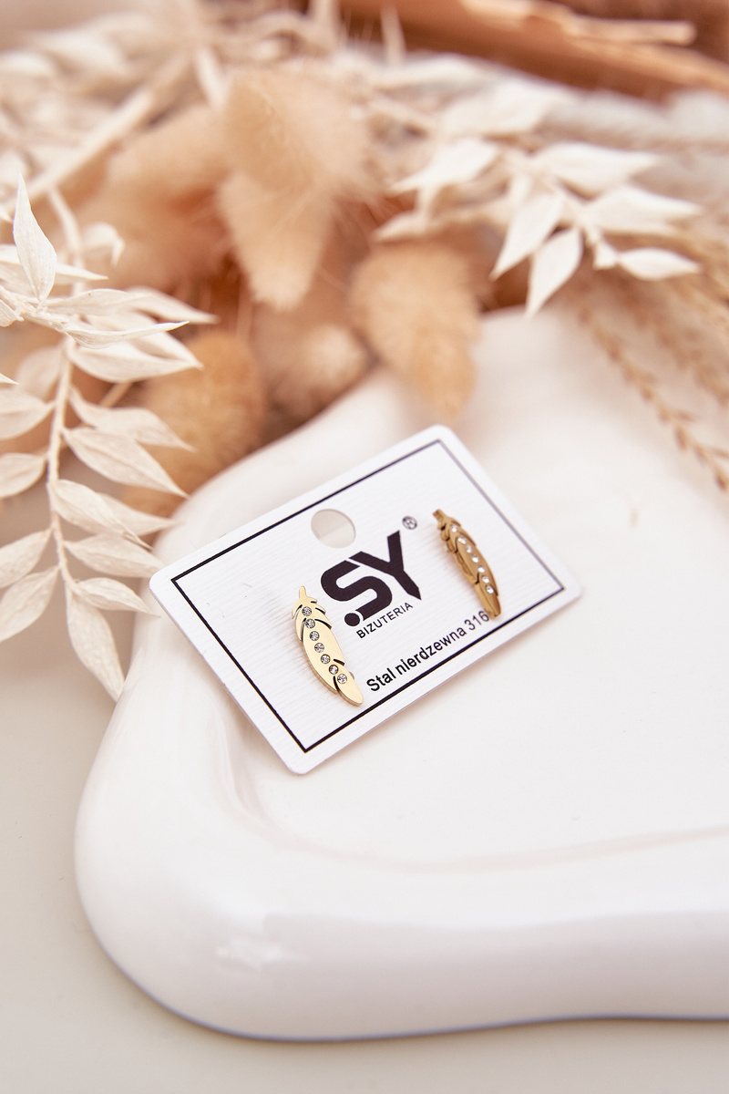 Kolczyki Listki Z Cyrkoniami Stal Nierdzewna Złote