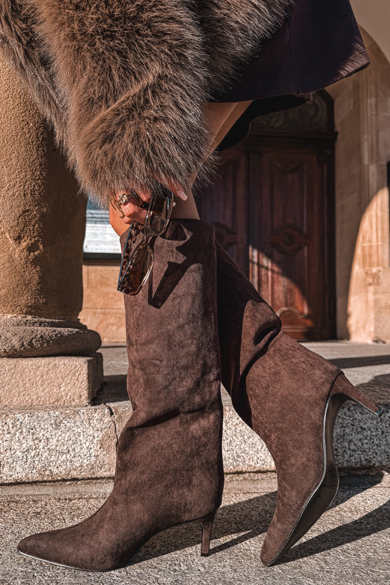 Kozaki Damskie Z Eko Zamszu Wsuwane Na Szpilce Czekoladowe Phelin