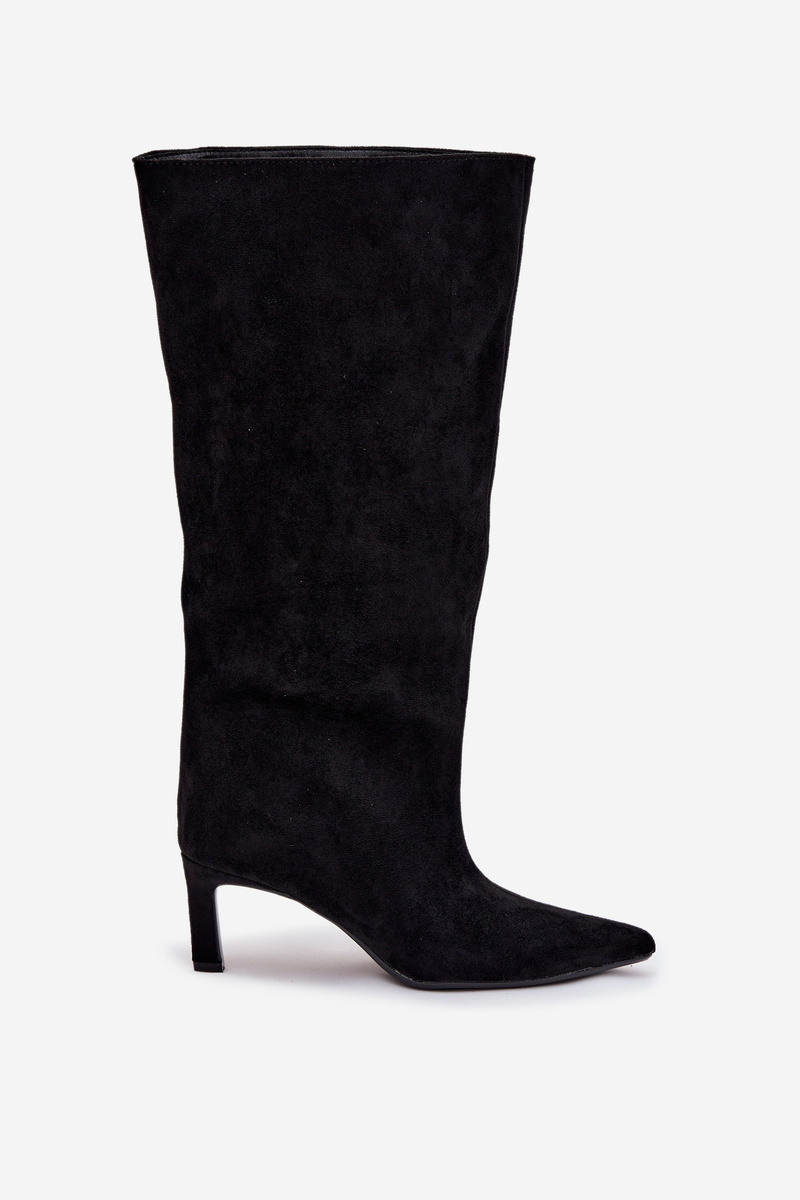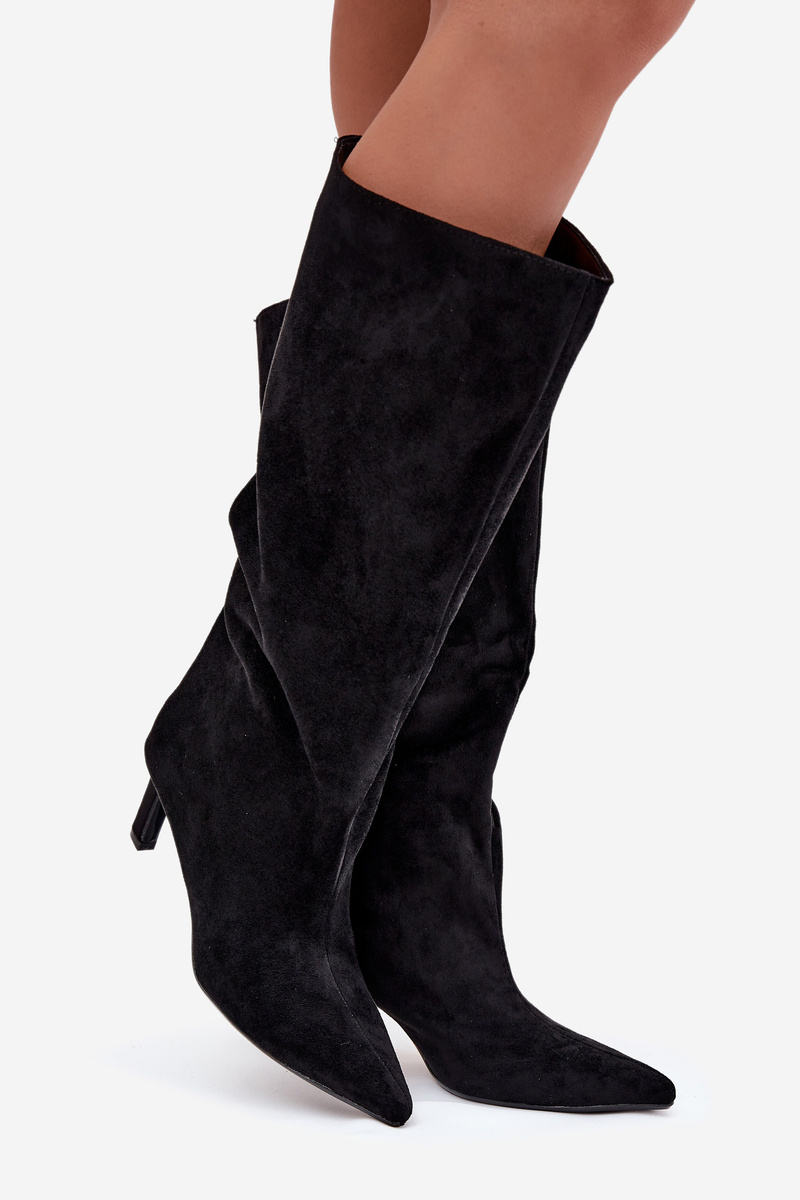 Kozaki Damskie Z Eko Zamszu Wsuwane Na Szpilce Czarne Phelin