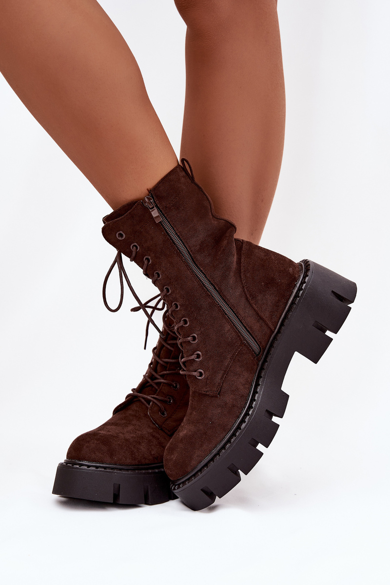 Botki damskie wykonane z eko zamszu. Model zapinany na zamek z dodatkowym sznurowaniem pozwala na idealne dopasowanie do stopy. Ocieplane wnętrze z miękkiego koca obuwniczego gwarantuje komfort w chłodne dni, a platforma z obcasem zapewnia stabilność. Subtelny detal na cholewce dodaje całości eleganckiego, modnego akcentu. Doskonale komponują się z codziennymi stylizacjami. Przy wyborze rozmiaru prosimy sugerować się tabelą rozmiarów.