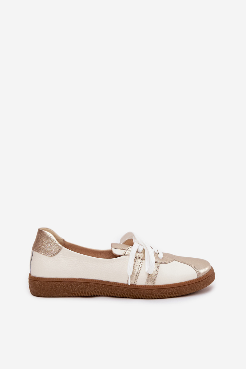 Skórzane Półbuty Damskie Typu Barefoot Zazoo N1341 Biało-Złote