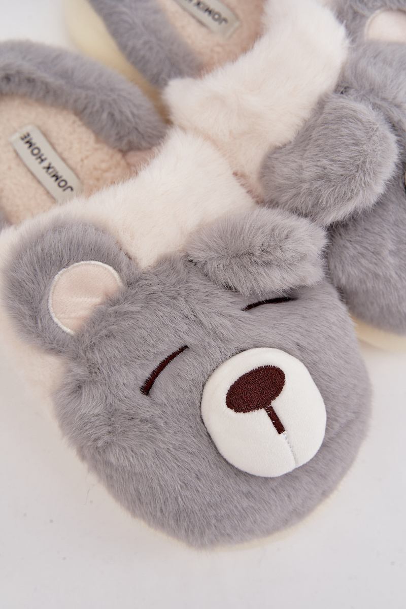 Futrzane Kapcie Z Motywem Misia Szare Galine