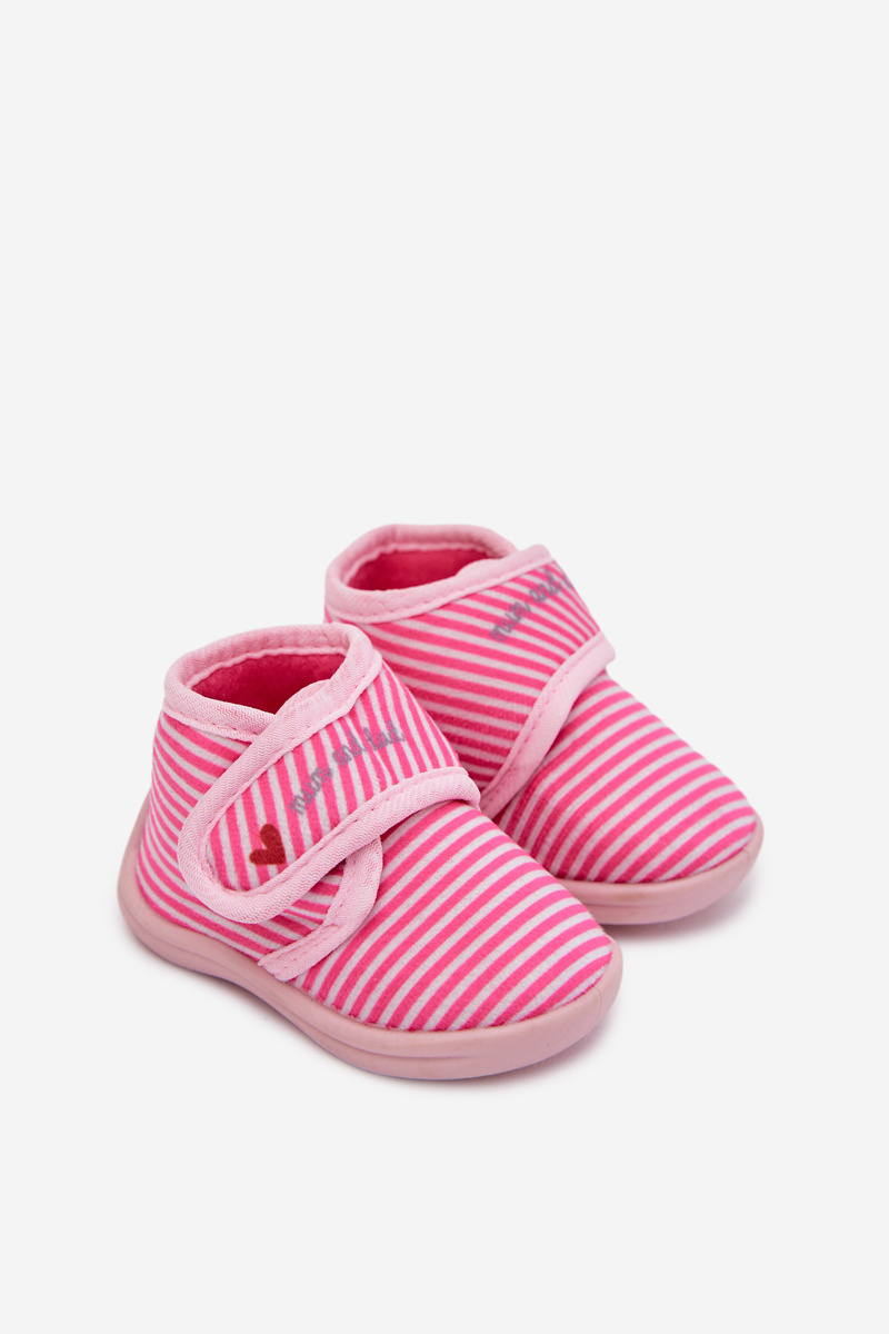 Kapcie Dziecięce Na Rzep W Paski Różowe Lavelle